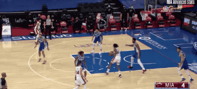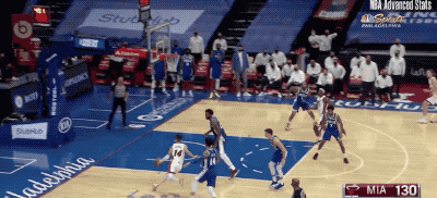 中锋球员在阿丘瓦的防守下平均能打出63%的命中率,这个数据不好看,毕竟以阿丘瓦的身材对上高大中锋确实略显吃力。比如10月13日热火对阵76人的比赛,恩比德就在顶替阿德巴约首发的阿丘瓦面前打了个13中10,全场怒砍45分16篮板。