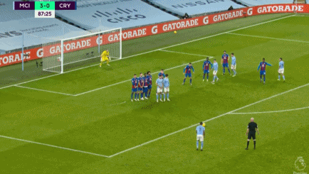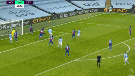 第87分钟,费兰-托雷斯被麦克阿瑟放倒,曼城获得大禁区前沿左侧任意球机会,斯特林主罚直接右脚打门,皮球划出一道完美的弧线后奔向球门死角,曼城锁定胜局,4-0!此后,双方均无建树。全场比赛结束,曼城主场4-0击败水晶宫,豪夺联赛5连胜。