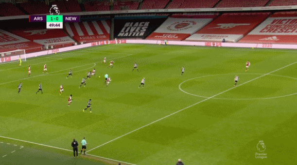 比赛的第77分钟,阿森纳前场打出犀利的配合,小将萨卡边路直传,塞德里克在皮球出底线前下底传中,奥巴梅扬在禁区里无人防守,加蓬射手轻松的推射空门,3-0,阿森纳锁定了胜局。根据OPTA的数据统计,纽卡斯尔是奥巴梅扬最喜欢的对手之一。最近7次对阵喜鹊,奥巴梅扬有6场比赛均有进球或助攻(累计5球2助攻)。最近4次,他在踢纽卡的时候都有进球。