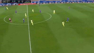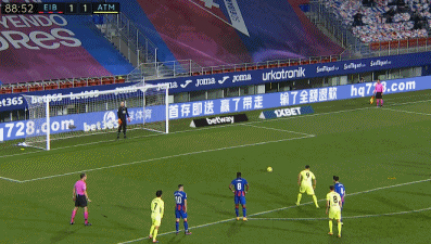 第9分钟,阿尔比利亚后场长传,武藤嘉纪前插到禁区内接应时被卡拉斯科撞倒,主裁判判罚点球。埃瓦尔门将德米特洛维奇主罚点球命中,埃瓦尔1-0领先马竞。