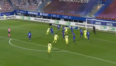 第40分钟,略伦特右路传中,塞尔吉奥-阿尔瓦雷斯后场解围失误被略伦特拦截,苏亚雷斯禁区右侧小角度抽射破门扳平比分,1-1。