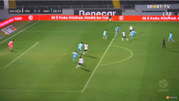 6分钟后,夸雷斯马就用他标志性的外脚背射门,为吉马良斯扳平比分。吉马良斯右路内切后试图直传,后卫将球又挡回了夸雷斯马面前。这位37岁的老将略作调整之后,右脚外脚背大力弹射。皮球画出明显的外旋弧线,飞入球门远端死角。