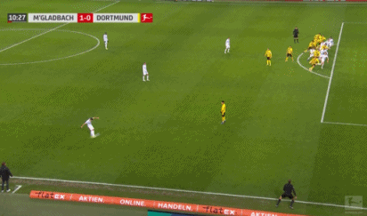 第11分钟,门兴前场的任意球进攻。霍夫曼右路任意球传中,禁区中埃尔维迪包抄头球冲顶破门,门兴1-0。