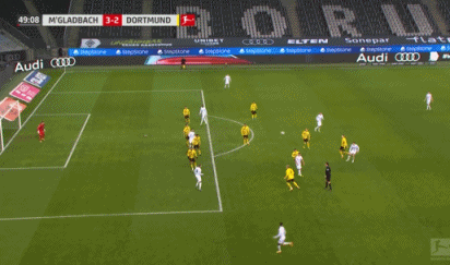 下半场易边再战。第49分钟,诺伊豪斯远距离挑传把球送到禁区左侧,本塞拜尼插上停球后带进禁区,随后本塞拜尼急停趟过一名多特球员,接着漂亮的小角度抽射破门,门兴再次领先3-2。第53分钟,普莱亚禁区左侧路接霍夫曼直塞,小角度推射擦柱而出。