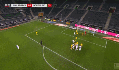 第76分钟,布兰特传球,贝林厄姆的抽射稍偏。第78分钟,门兴左侧诺伊豪斯角球传中,替补出场的图拉姆头槌破门,4-2。第83分钟,门兴反击,图拉姆直塞,恩博洛带进禁区,禁区右侧面对比尔基的抽射被挡出。门兴最终4-2击败多特。
