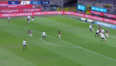 第63分钟,伊利契奇沿着右路杀入禁区,起脚打门,皮球被克亚尔挡出底线。随后,亚特兰大开出前场右侧角球,萨帕塔头球攻门,皮球击中球门右侧立柱,随后被解围,米兰逃过一劫。