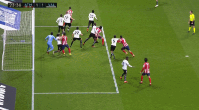 比赛开场仅1分钟,苏亚雷斯斜传,菲利克斯得球后突入禁区低射攻门偏出底线。第6分钟,科克角球传中,吉梅内斯头球攻门被扑出。第11分钟,加亚左路横传中路,拉契奇一记世界波洞穿马竞球门,瓦伦西亚1-0领先。