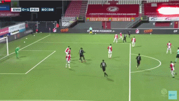 久攻不下的埃因霍温,在第81分钟收获幸运进球。儒尼奥尔右路45度传中,扎哈维前点飞身铲射。扎哈维以五厘米的差距没能碰到皮球,但他的这次铲射明显干扰了门将的判断。门将愣在原地,目送皮球在弹地后撞柱入网。