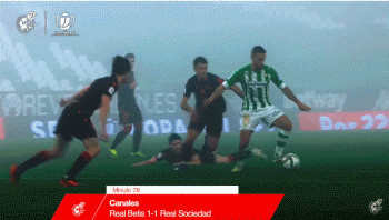 下半场中,场上雾气开始变大。48分钟时,皇家社会后腰伊利亚拉门迪就吃到了一张值得商榷的红牌。伊利亚拉门迪大脚解围踢空,但贝蒂斯中卫西德尼却抱着腿倒地,主裁向皇马旧将出示了第二张黄牌将其罚下。