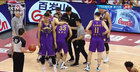 比赛进行到第二节还剩3分52秒,孙桐林在抢篮板的时候膝盖受伤,被换下场,3分钟多一点北控伤了3人,老将孙悦上场不得不打到内线。