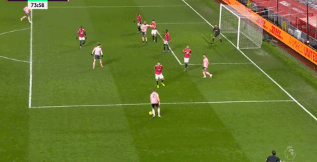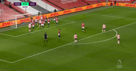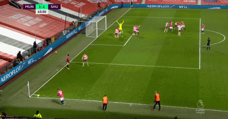 第64分钟,B-费尔南德斯主罚25码处任意球右脚射门被人墙挡出底线。特莱斯开出左侧角球,无人防守的马奎尔10码处头球破门,1-1平。