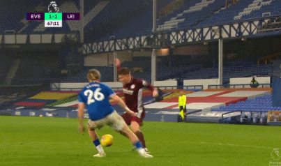 第67分钟,蒂勒曼斯弧顶接巴恩斯左前场的回敲后一脚贴地抽射,皮克福德挡了一下没把球拦住,球弹地后又撞左门柱进网,1-1,莱斯特扳平。