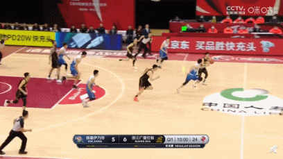 首节进行到9分57秒,广厦队推快攻,冯欣持球杀到篮下背传中路,快速跟进的胡金秋接球迎着防守人完成暴力隔扣。之后战至7分55秒,胡金秋又在快攻中上演飞身暴扣,广厦15-7领先将新疆打停。