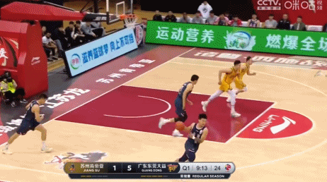 今天晚上,CBA常规赛第36轮比赛继续进行,杜锋带领的广东迎战李楠带领的江苏,比赛刚开始,赵睿就完成了一条龙扣篮。