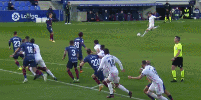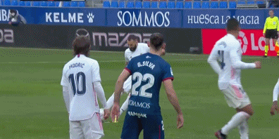 在比分落后的情况下,瓦拉内挺身而出成为了皇马功臣。第55分钟,本泽马主罚前场任意球直接射门,足球击中横梁后高高弹起,瓦拉内在门前争顶力压两名韦斯卡球员头球破门,帮助皇马在丢球后仅仅7分钟就将比分扳平,稳定了全队的军心。