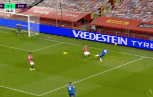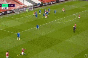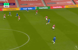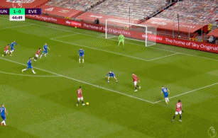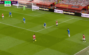 是的,埃弗顿的进攻威胁带来的是他们的防守风险。22分钟格林伍德已经距离一条龙服务只差一步,1分钟后拉什福德也出现在这一侧添乱。这也是过分的盯人防守带来的问题,一旦对方有个责任田以外的球员混进来,就很容易没人搭理。