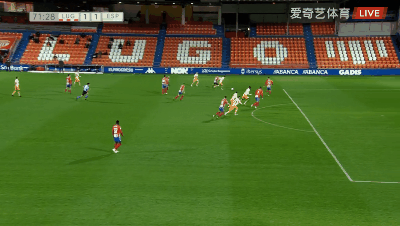 随后的时间,双方互有攻守,西班牙人一度在第43分钟打进一球,德托马斯禁区前沿的射门被防守球员挡出,普阿多禁区右侧跟上低射破门,随后裁判回看VAR确定越位在先,进球无效。半场战罢,卢戈主场1-0领先西班牙人。