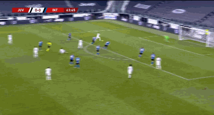 下半场比赛,双方易边再战。第56分钟,阿什拉夫在禁区内右侧的倒三角传中,劳塔罗中路包抄没有碰到皮球,后点的达米安的抽射,皮球高出横梁。第58分钟,国米前场断球,劳塔罗在禁区内打门,与出击的布冯撞在一起。第59分钟,C罗在禁区左侧得到拉比奥的斜传,杀入禁区内后的抽射,皮球高出横梁。