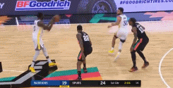 “确实有点像乔丹,”科尔说,“我看过好几次乔丹投中那种球,冲向篮筐,被犯规,然后背着篮筐把球扔进。他不总是投进,但他喜欢那种投篮,这对身体的控制和触感要求都非常高。多棒的投篮啊。”