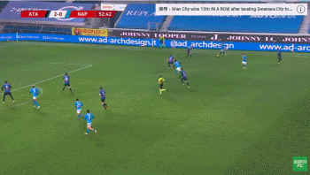 在第53分钟时,那不勒斯扳回一球。巴卡约科禁区右侧左脚劲射发生折射,洛萨诺后点飞身垫射被门将扑出,洛萨诺立刻快速起身补射破门。
