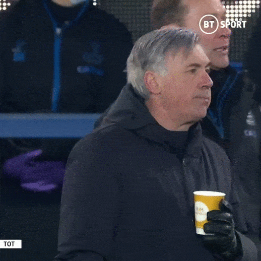 加时赛中,第98分钟,伯纳德反越位成功,轻松破门,5-1,埃弗顿完成了绝杀!进球后,埃弗顿球员非常兴奋。替补席上,埃弗顿的教练组和球员们也都是无比的开心。但是,有一人除外——安切洛蒂。这位意大利名帅手里拿着一杯热饮,站在场边看着场内。当身边其他人都开始跳起来庆祝的时候,他只是安静的低头喝水,仿佛一切都和他无关……