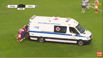 在大卫-卡莫被送上车后,救护车却在湿滑的草坪上发动不起来了。佩佩和几名布拉加球员集体推车,在救护车最终开起来之后,比赛才继续进行。虽然路易斯-迪亚斯并非有意踩踏,但主裁仍然在看过VAR后将其罚下。射门染红的情况,极为罕见。