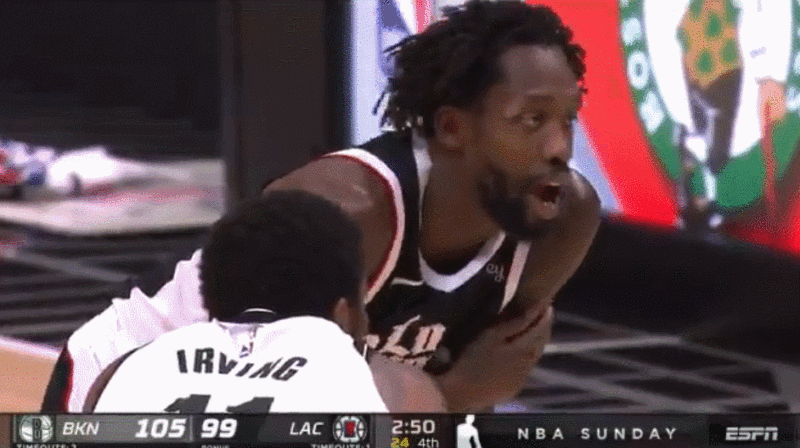 篮网显然受够了贝弗利的骚扰,等到贝弗利领到第六犯却还迟迟不下场时,场边的杜兰特也对他喷起了垃圾话,叫他赶紧滚蛋。