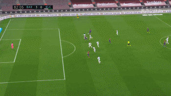 在第82分钟时,巴萨踢出一次经典的传切配合。佩德里中路直传,德斯特左路反越位横敲,格里兹曼中路包抄到位。巴萨这一系列传跑都很到位,但偏偏格里兹曼射门少了点运气。法国人先是推射击中横梁,然后胸部补射又把球挡出了横梁。