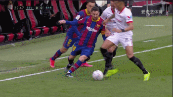 梅西当然是塞维利亚的重点防范对象,此役他4次遭到侵犯,这一数据全场最高。在上半场中,梅西甚至两次被对手打脸。23分钟时,梅西在右路带球时,遭遇埃斯库德罗和吕克-德容的双人包夹。埃斯库德罗的右胳膊肘,直接砸在了梅西脸上。梅西一度长时间倒地不起,但主裁并没有向犯规者出牌。
