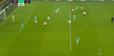 第5分钟,诺伍德主罚右路定位球吊至禁区后点,麦戈德里克抢点头球攻门,皮球被被阿德里安扑出。第9分钟,蒂亚戈中场送出过顶挑传,马内头球摆渡,菲尔米诺后插上领球杀入禁区单刀推射被拉姆斯代尔神勇化解。1分钟后,罗伯逊左路起脚传中,皮球直接旋向球门被拉姆斯代尔飞身封堵。第16分钟,布赖恩中场斜长传策动进攻,麦克布涅胸部卸球后回做,麦戈德里克迎球推射攻门发生变线后被阿德里安拒之门外。