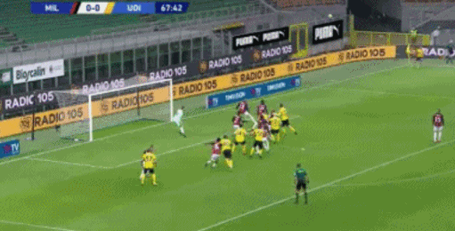 第68分钟,乌迪内斯率先打破僵局,1-0。德保罗开出前场右侧角球机会,皮球吊入禁区后,后卫贝康在点球点附近头球攻门。这次头球攻门的力度不大,而且角度也不刁钻,但皮球飞行的路线比较诡异,不利于门将扑救。皮球在门前下坠后,从多纳鲁马的裆下钻进了米兰网窝。