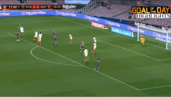 12分钟登贝莱左侧禁区弧左侧大力推射,皮球飞入球门左上死角。1-0,巴萨领先,总比分追为1-2,塞维利亚本赛季首次在国王杯中丢球!