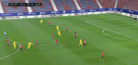 在今夜比赛第30分钟时,梅西和阿尔巴就上演了巴西联线,不过这次两人的传跑配合更加“大型化”。梅西在中圈弧前控球,阿尔巴则在左侧插上,两人之间距离足有20米远。在梅西身前,奥萨苏纳三名防守球员组成三角防守站位。而另外5名后卫,则组成了后卫线。算上门将,奥萨苏纳共有9人参与了这次防守。如果算上梅西身后的两名前锋的话,奥萨苏纳全队11名球员都参与了这次防守,但却仍然守不住!