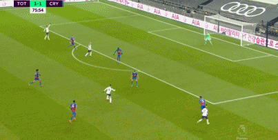 第55分钟,孙兴慜左路内切远射打偏。第56分钟,汤森右路传中,本特克12码处头球攻门被门线前的凯恩挡出。第58分钟,多尔蒂右路传中,凯恩头球摆渡,后点雷吉隆4码处射门被挡出底线。第61分钟,贝尔开出右侧角球,凯恩6码处头球攻门顶偏。第69分钟,水晶宫反击,施卢普传球,扎哈禁区前沿左脚射门,球打在右立柱上弹出。