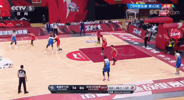 第三节最后一攻,新疆队握有满满的24秒进攻时间,阿尔斯兰全程掌控球权,只见他不慌不忙缓缓运球过半场,由于阿尔斯兰的投射突破能力都一般,深圳队自始至终单防他。阿尔斯兰球在手中,拉开单打之势,周琦心领神会上前给他做挡拆配合,阿尔斯兰获得投篮良机,他在24秒即将到来之时自信超远3分出手,结果略显尴尬,3分磕在篮筐前沿,力量小了不少。就这样,新疆队错失了第三节这最后一攻的机会,三节74-86落后深圳队12分。