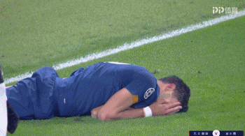 在右路底线附近纵向带球突破时,格鲁伊奇与拉比奥发生身体接触后倒地。格鲁伊奇立刻双手捂脸,他似乎感觉非常疼痛。在趴倒在地时,格鲁伊奇从指缝间偷眼看向裁判,他想看看裁判是如何吹罚的。