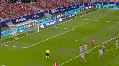 第50分钟,略伦特右路直塞,苏亚雷斯突入禁区内切时被努涅斯绊倒,主裁判判罚点球。苏亚雷斯主罚点球命中,马竞2-1反超。