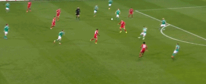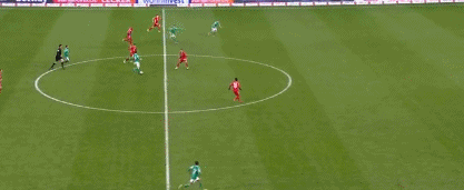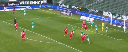第20分钟,不莱梅后卫解围没有顶远,基米希禁区外右脚凌空抽射,皮球稍稍高出横梁。第22分钟,基米希左侧角球传入禁区,穆勒前点头球一蹭,格雷茨卡中路头球冲顶破门,0-1!