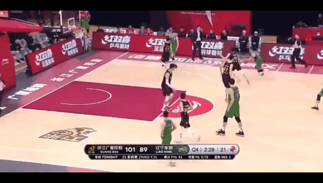 辽宁和广厦的比赛进行到最后一节,离结束还有两分半钟,郭艾伦拍马冲向篮筐,遭到广厦两人围剿,一番身体接触后,郭艾伦趔趄倒地。