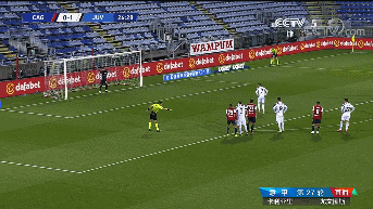 第24分钟,C罗接到队友的挑传在禁区内面对门将,被门将踢倒,主裁判罚点球。C罗亲自主罚,打球门左侧,皮球入网,尤文2-0卡利亚里。