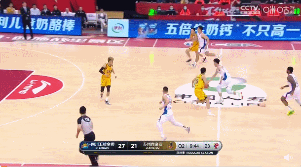 今日,江苏迎战四川。第二节比赛,韩硕命中了一记高难度的勾手上篮。
