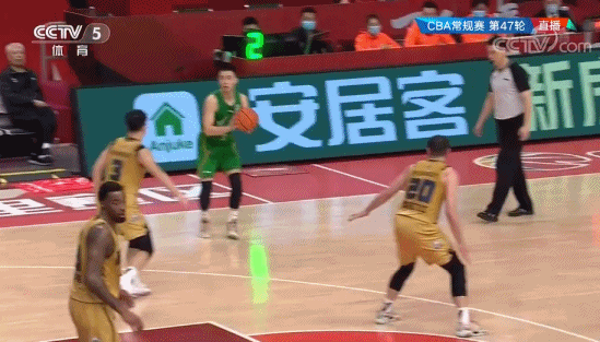 第三节进行到4分09秒,赵继伟接郭艾伦传球,突破杨皓喆后,做了一个传给张镇麟假动作后,用欧洲步晃过孙思尧轻松上篮,鞍山保罗这球太风骚了。