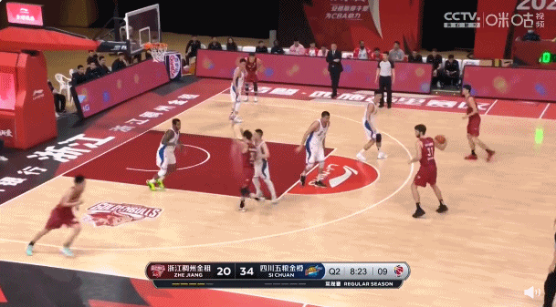 今日,浙江迎战四川。第二节比赛,吴前 助攻拉科塞维奇暴力隔扣朱松玮。