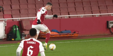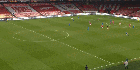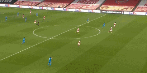 第80分钟,厄德高后场传球,奥巴梅扬快速带球突破形成单刀球,面对门将推射直接射偏。