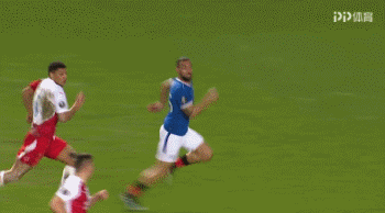 鲁夫高高跃起抬起右脚,他试图抢在科拉什之前完成射门。但鲁夫没能完成射门,反倒一脚踹在了科拉什脸上。