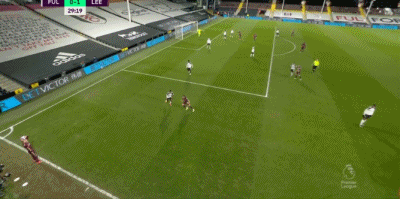 第58分钟,利兹联中场断球后,班福德拿球后晃过一名试图铲球的富勒姆球员,随后送出精准直塞球,队友拉菲尼亚带球从两名防守球员当中突入禁区后低射破门,利兹联2-1再次领先。