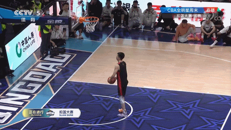 最后一个登场的张杨,第一扣起跳不够充分,挑战篮筐失败。不过他很快调整状态,一个小折叠正面扣篮得手。最后张杨拿下了39分。
