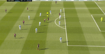 比赛第20分钟,巴斯克斯右路横传,克罗斯停球后面对塞尔塔球员选择了带球突破,随后在禁区前沿左侧吸引了四名防守球员,而克罗斯随即从人缝中送出精准传球,禁区内的本泽马反越位成功后射门得分。