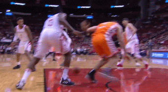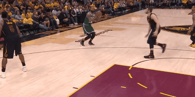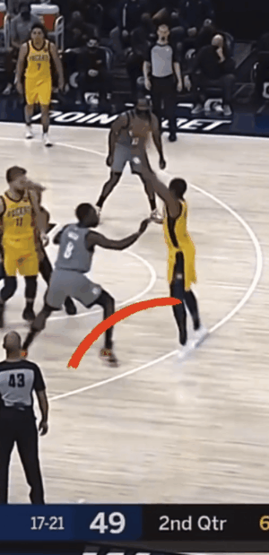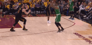 所以,从这个角度看,“垫脚”这一动作对很多防守球员来说或许根本就是为了保持平衡的惯性动作,非刻意情况下难以规避,事实上,文章开头提到的希尔就在随后一个回合防守詹姆斯时遇到了这个问题,在詹姆斯三分出手时,希尔向前封盖,脚自然而然的落在了詹姆斯的落地区域,如果不是他反应快及时往回收了小半步,恐怕“两次刻意企图废掉詹姆斯”的罪名就是跳进黄河也洗不清了。