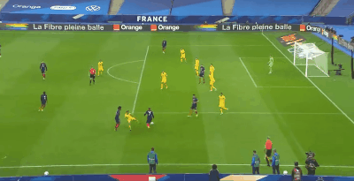 第59分钟,科曼在右路带球突破后杀入禁区,进入射程直接起脚打门,皮球被对方门将挡出底线。第63分钟,法国进行人员调整,用博格巴换下吉鲁,用登贝莱换下科曼。第65分钟,博格巴中场吊传至身后,姆巴佩接球后凌空打门,没有踢正部位,皮球偏出了左侧立柱。